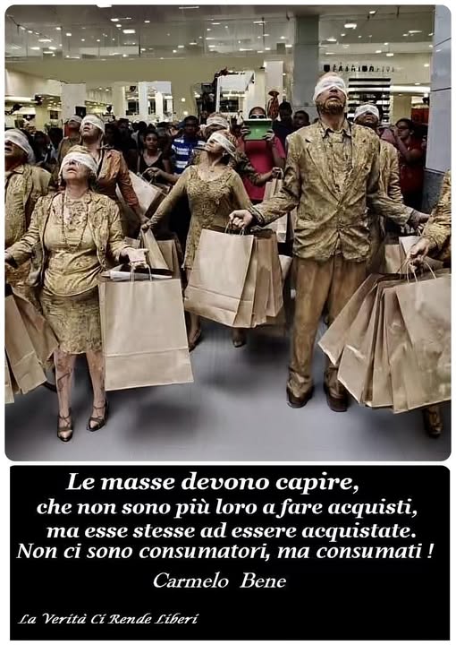 La frase di Carmelo Bene è un aforisma denso e provocatorio che critica radicalmente la società dei consumi e il concetto stesso di consumo. Ecco una spiegazione per renderla più chiara: